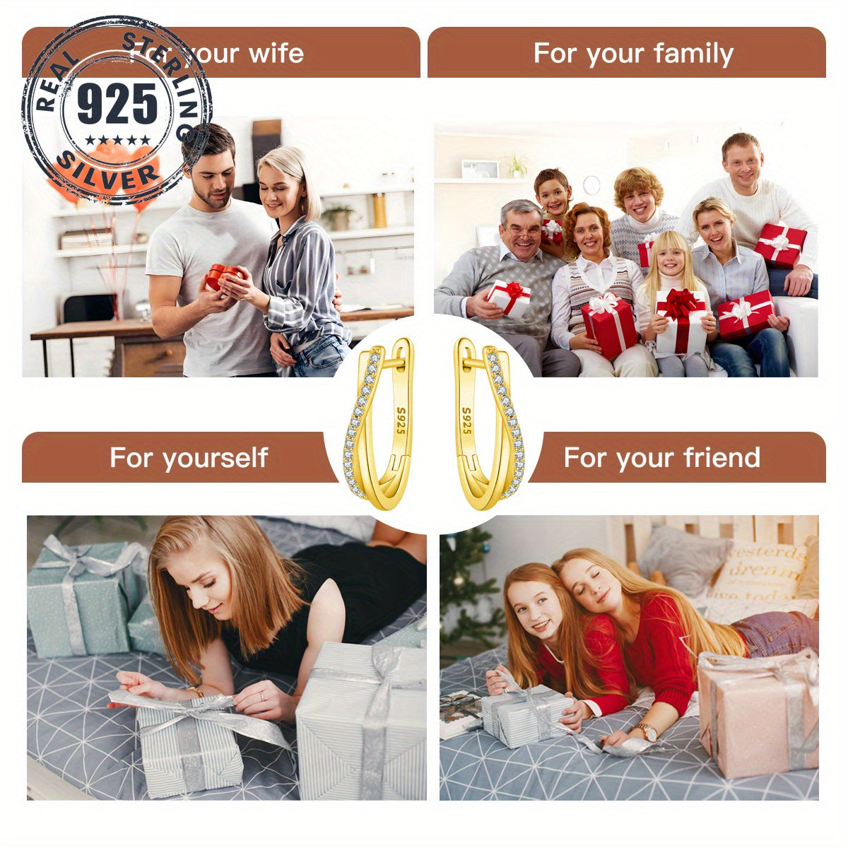 1 Pair S925 Sterling Silver 18K Golden Plated Hoop Earrings, Stone-Inlaid Twisted Line Design - Hypoallergenic, Elegant & Luxurious Women'S Jewelry for Daily Wear & Gifting, High-Quality Zirconia Inlay, Allergy-Free, Stylish Gift Earrings, Jewelry for