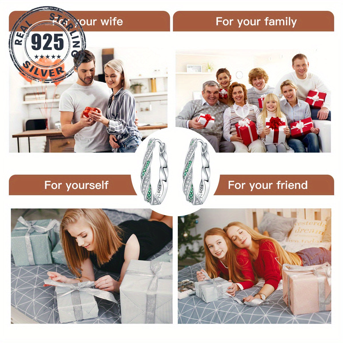 1 Pair S925 Sterling Silver Hoop Earrings, Green Twisted Design, Hypoallergenic, High-Quality Jewelry for Women, Perfect for Daily Wear or Gifting, Daily Wear Earrings | Twisted Hoop Earrings | Hypoallergenic Earrings